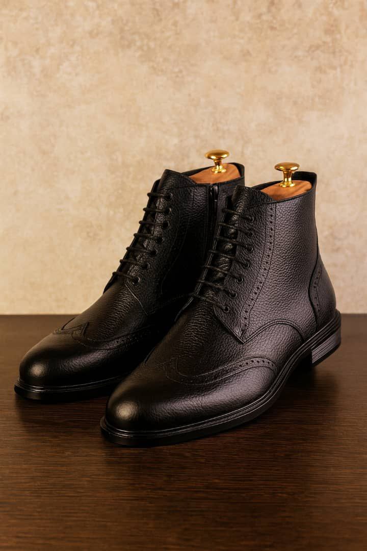 نیم بوت مردانه چرمی B102 کلاسیک با چرم فلوتر و کفی PU طبی ایتالیا